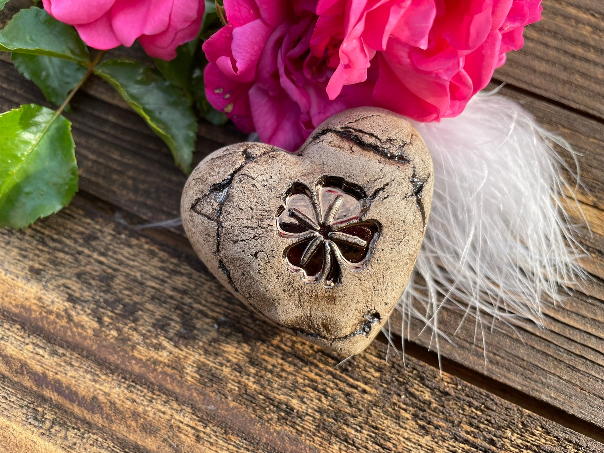 Deko Herz mit Glückskleeblatt